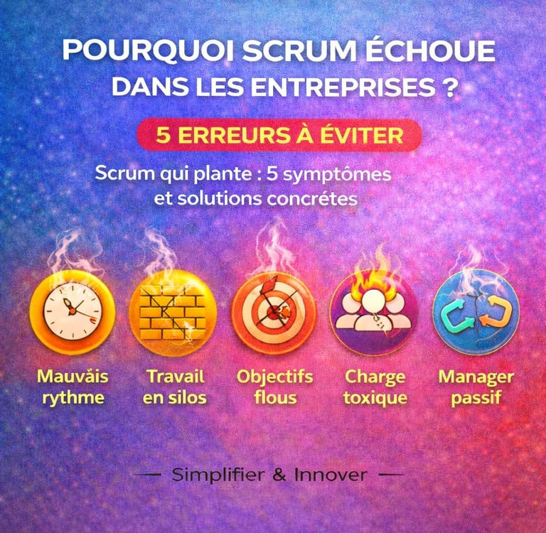 Pourquoi Scrum échoue dans certaines entreprises ? Découvrez 5 erreurs majeures qui sabotent les équipes agiles et comment les éviter.