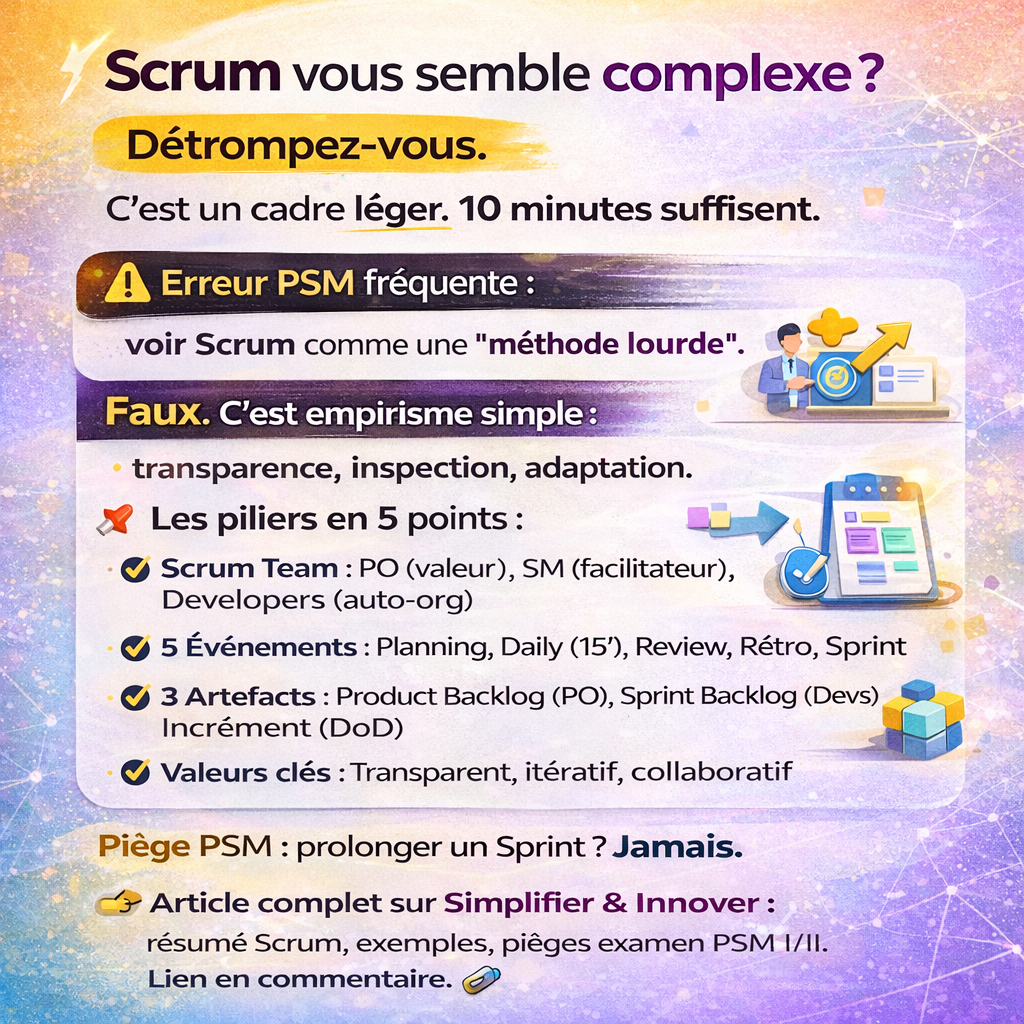 Dans cet article, vous allez comprendre simplement comment Scrum fonctionne réellement… et surtout comment raisonner correctement à l’examen.